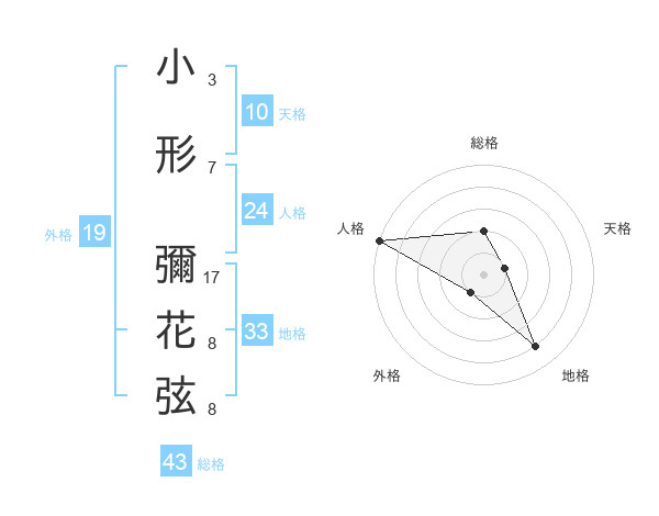小形 彌花弦さんの総格は43画の2点!