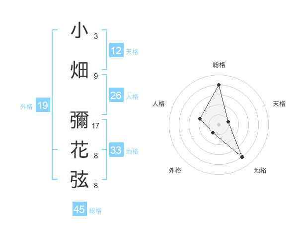 小畑 彌花弦さんを姓名の画数から五運を鑑定