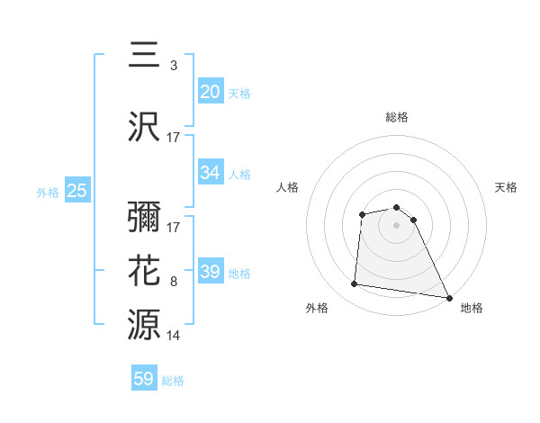三沢 彌花源さんの総格は59画の1点!