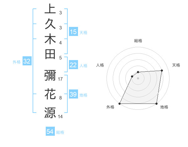 上久木田 彌花源さんを姓名の画数から五運を鑑定