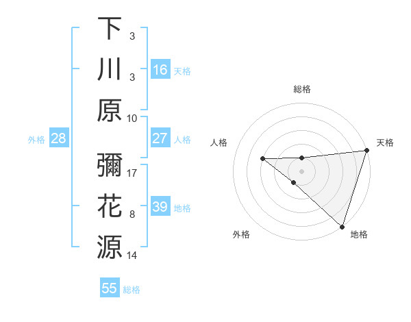 下川原 彌花源さんを姓名の画数から五運を鑑定