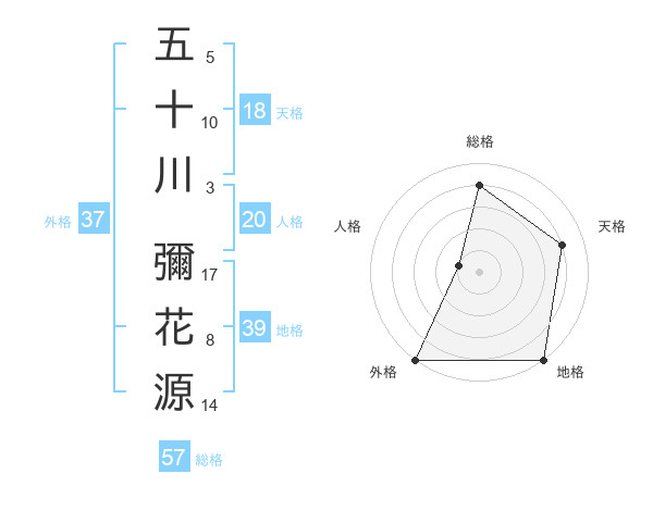 五十川 彌花源さんを姓名の画数から五運を鑑定