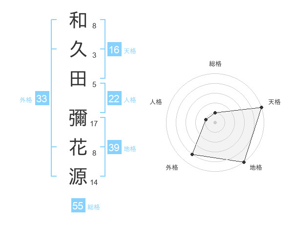 和久田 彌花源さんを姓名の画数から五運を鑑定