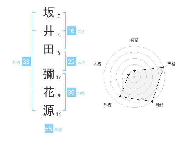坂井田 彌花源さんを姓名の画数から五運を鑑定
