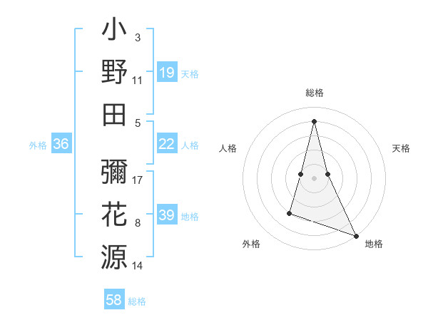 小野田 彌花源さんを姓名の画数から五運を鑑定