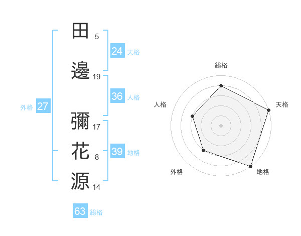 田邊 彌花源さんを姓名の画数から五運を鑑定