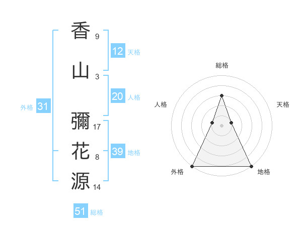 香山 彌花源さんを姓名の画数から五運を鑑定