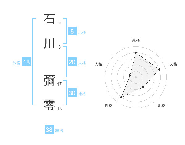 石川 彌零さんの総格は38画の4点!