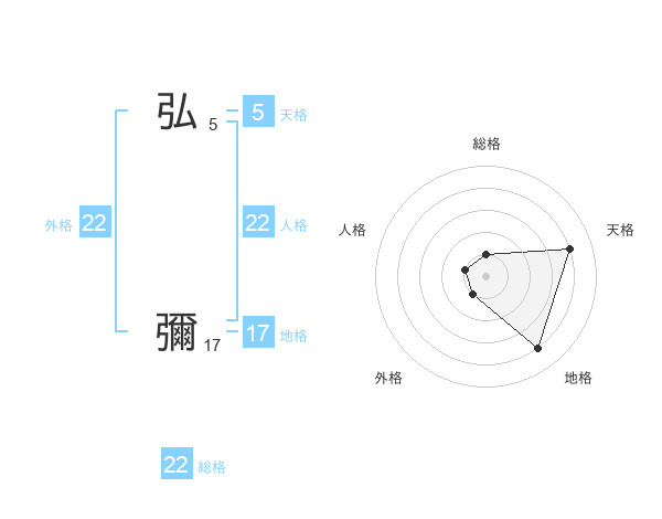 弘 彌さんの外格は22画の1点!