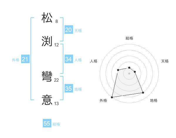 松渕 彎意さんを姓名の画数から五運を鑑定