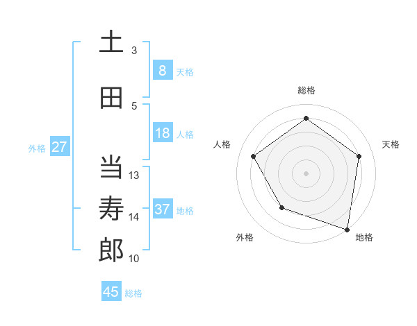 土田 当寿郎さんを姓名の画数から五運を鑑定