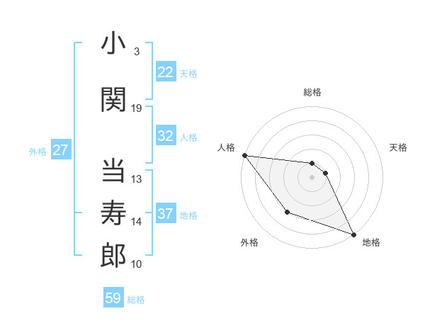 小関 当寿郎さんを姓名の画数から五運を鑑定