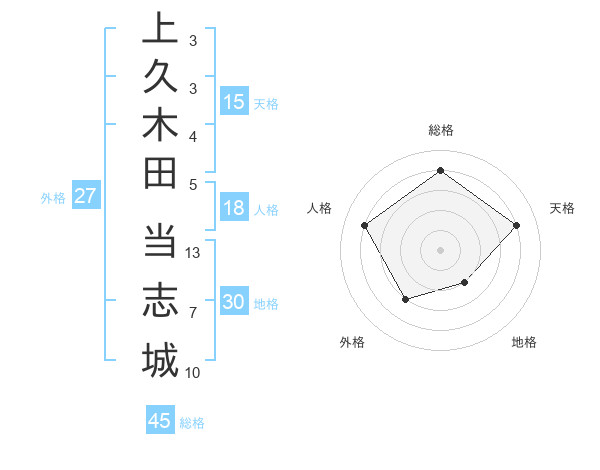 上久木田 当志城さんを姓名の画数から五運を鑑定