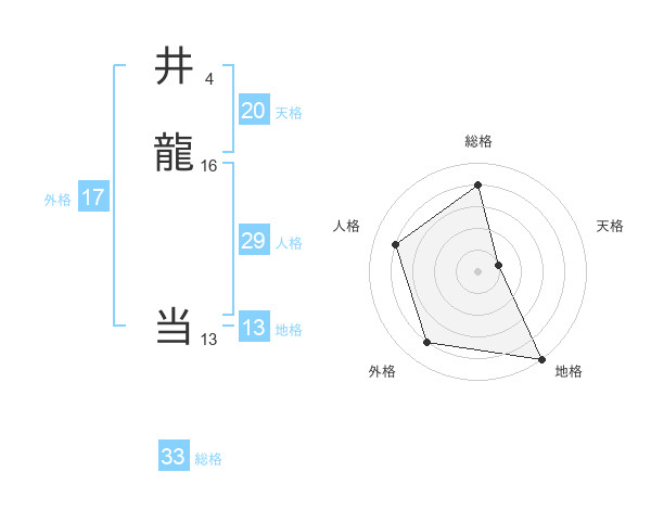 井龍 当さんの総格は33画の4点!