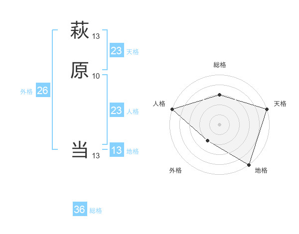 萩原 当さんの天格は23画の5点!