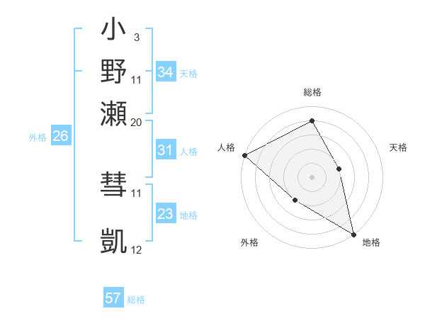 小野瀬 彗凱さんを姓名の画数から五運を鑑定