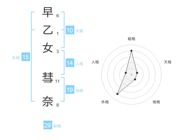 早乙女 彗奈さんを姓名の画数から五運を鑑定
