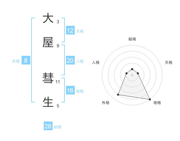 大屋 彗生さんを姓名の画数から五運を鑑定
