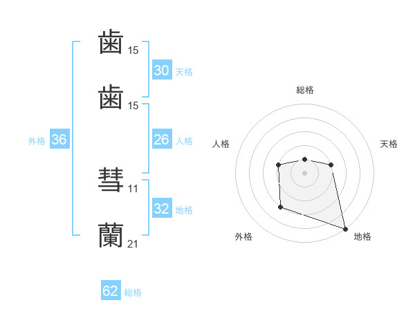 歯歯 彗蘭さんの外格は36画の3点!