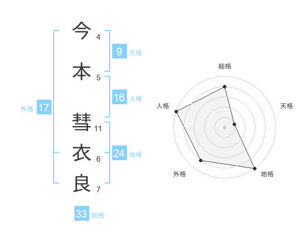今本 彗衣良さんの総格は33画の4点!
