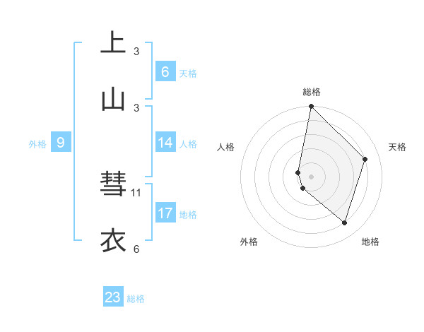 上山 彗衣さんを姓名の画数から五運を鑑定