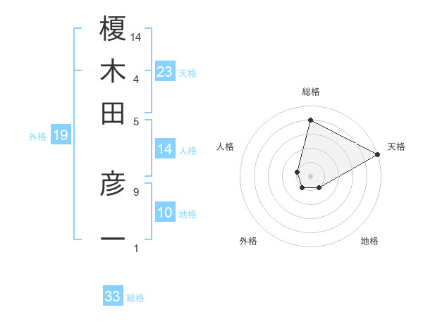 榎木田 彦一さんの総格は33画の4点!