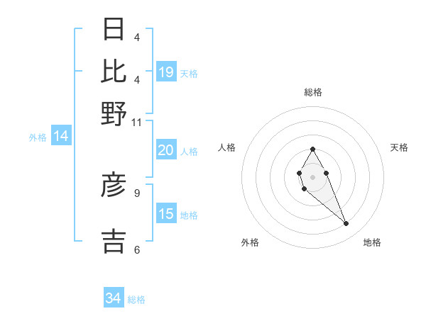 日比野 彦吉さんを姓名の画数から五運を鑑定