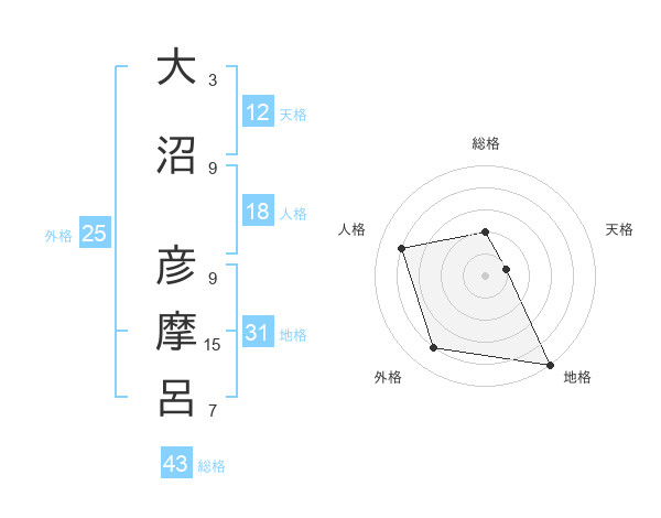 大沼 彦摩呂さんの総格は43画の2点!