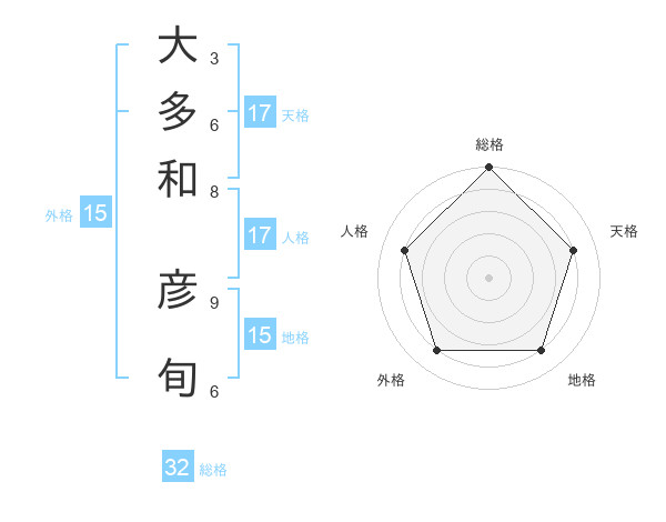 大多和 彦旬さんを姓名の画数から五運を鑑定