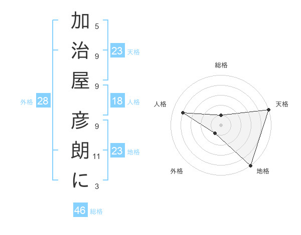 加治屋 彦朗にさんを姓名の画数から五運を鑑定