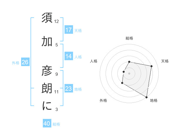 須加 彦朗にさんの天格は17画の4点!