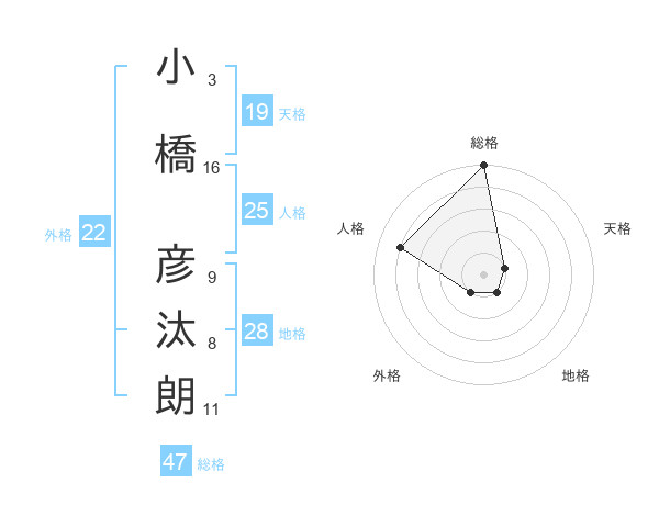 小橋 彦汰朗さんの総格は47画の5点!