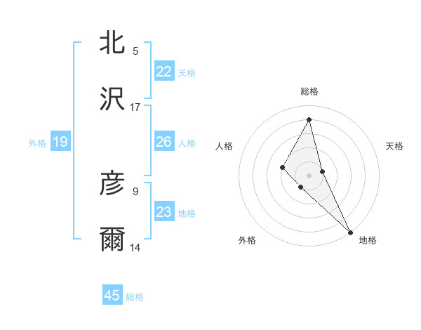 北沢 彦爾さんを姓名の画数から五運を鑑定