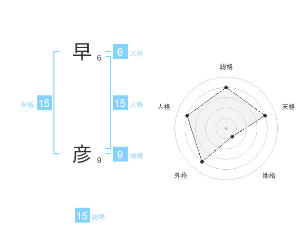 早 彦さんの総格は15画の4点!