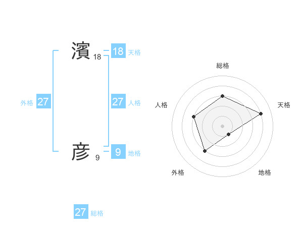 濱 彦さんの総格は27画の3点!