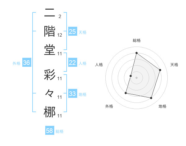 二階堂 彩々梛さんを姓名の画数から五運を鑑定