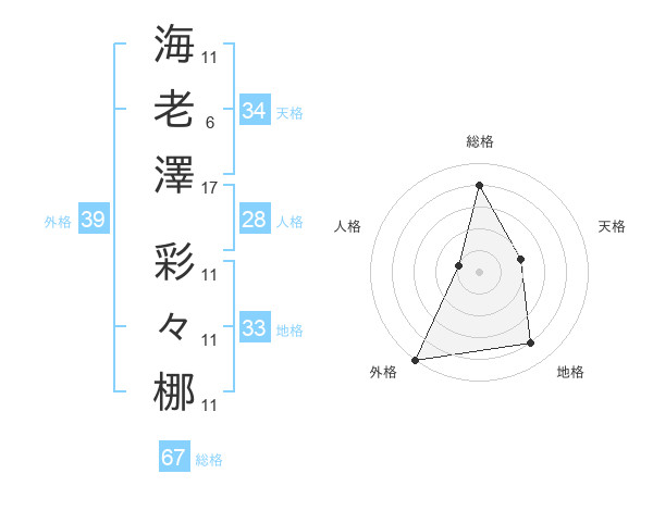海老澤 彩々梛さんを姓名の画数から五運を鑑定