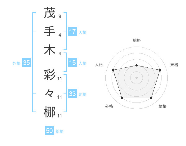 茂手木 彩々梛さんの天格は17画の4点!