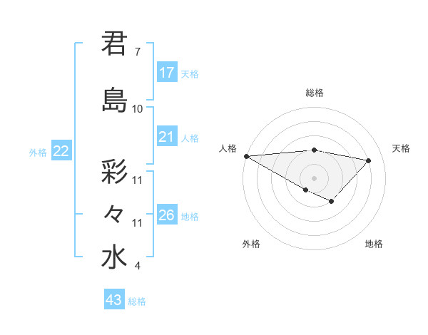 君島 彩々水さんを姓名の画数から五運を鑑定