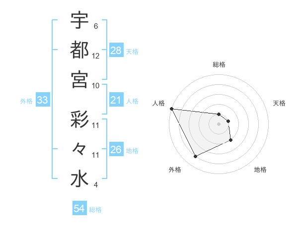 宇都宮 彩々水さんを姓名の画数から五運を鑑定