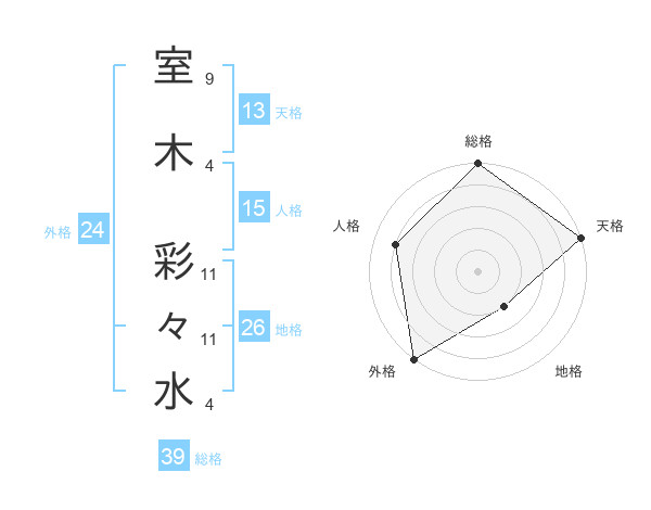 室木 彩々水さんを姓名の画数から五運を鑑定
