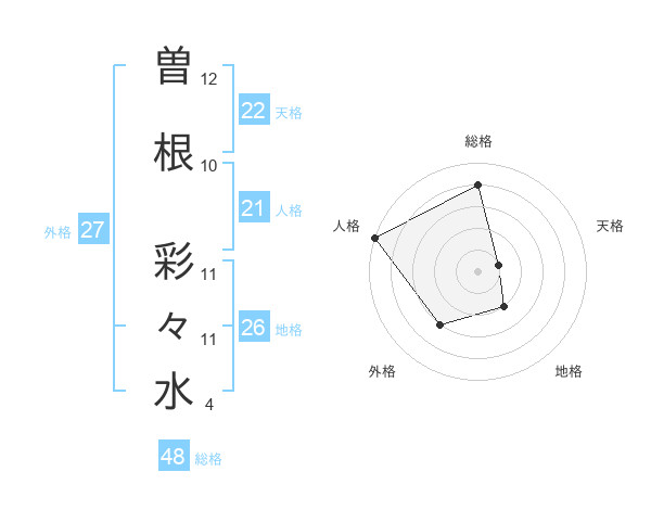 曽根 彩々水さんを姓名の画数から五運を鑑定
