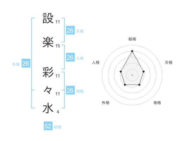 設楽 彩々水さんを姓名の画数から五運を鑑定