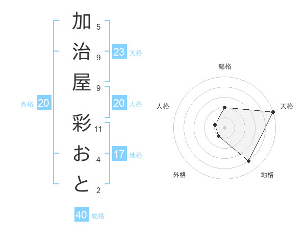 加治屋 彩おとさんの天格は23画の5点!