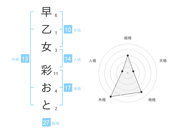 早乙女 彩おとさんを姓名の画数から五運を鑑定