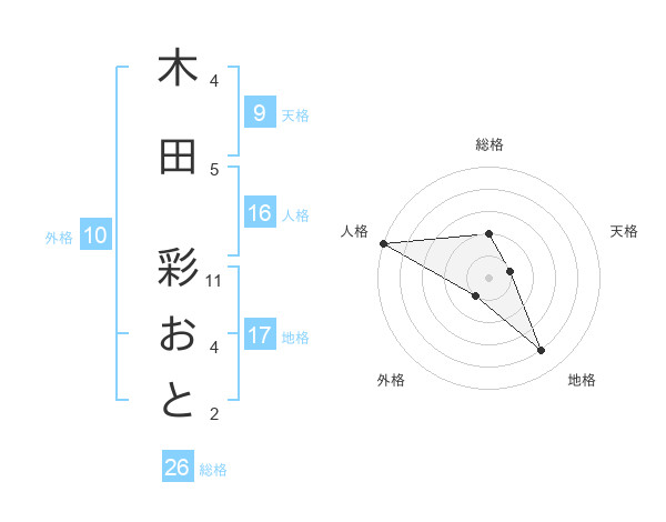 木田 彩おとさんを姓名の画数から五運を鑑定