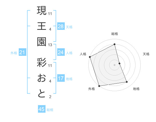 現王園 彩おとさんを姓名の画数から五運を鑑定