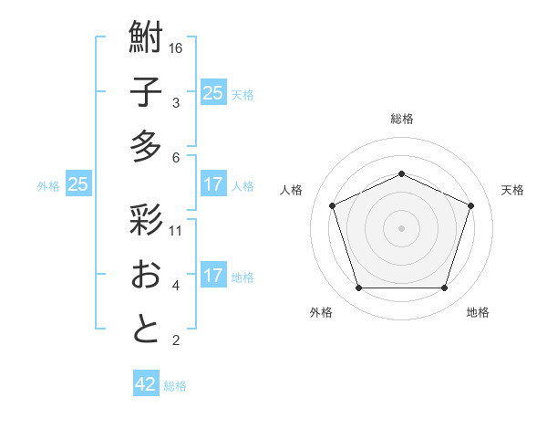 鮒子多 彩おとさんを姓名の画数から五運を鑑定