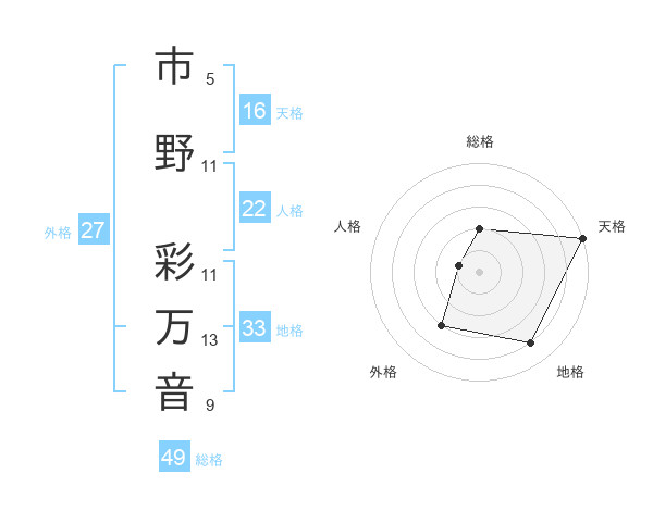 市野 彩万音さんの総格は49画の2点!