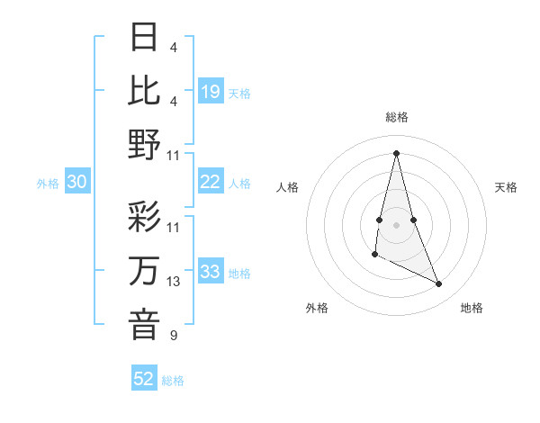 日比野 彩万音さんを姓名の画数から五運を鑑定